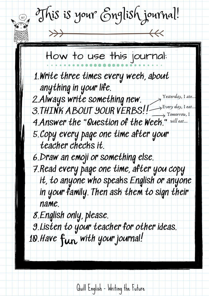 Each journal has clear suggested use instructions. This is from Journal #1, designed for use in the third semester of an intensive English program.